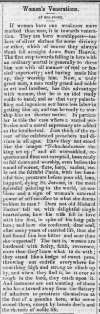 Women's Veneration BY MRS. STOWE