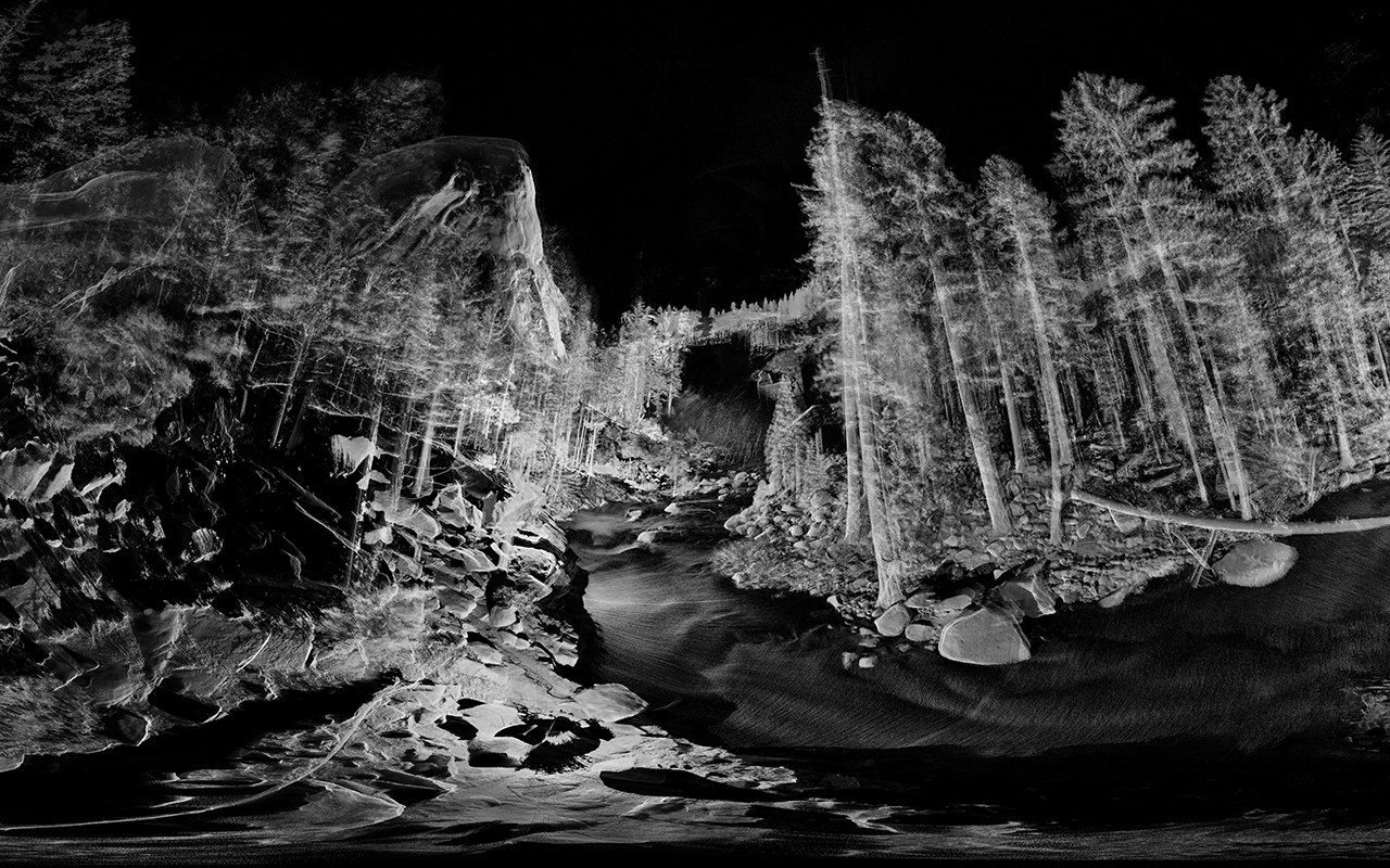 Background image, Equirectangular Landscapes 05: Nevada Falls (After Muybridge), based on 3D scan data captured in Yosemite National Park in 2016. ScanLAB Projects.